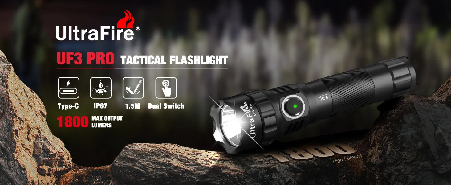The UF3 PRO delivers 1800 lumens in a rugged tactical design with dual switches for fast, reliable control—ideal for law enforcement, patrol, and outdoor use.