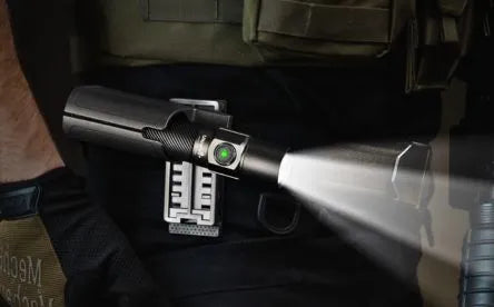 One-piece body design with multiple heat-dissipation fins, tail-end conductive surface (prevents poor contact), Type-C fast charging (compatible with car charger, power bank, laptop, etc.), emergency glass breaker steel tip, wrist strap, includes 2A fast-charging cable